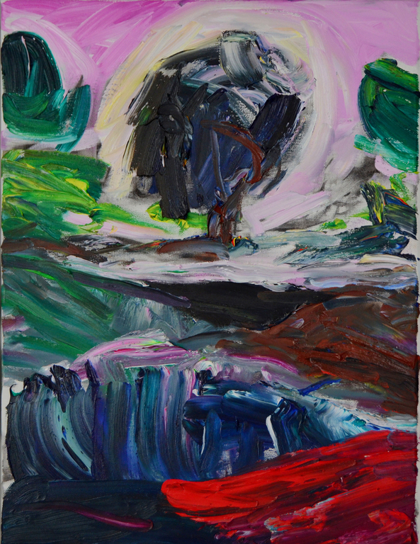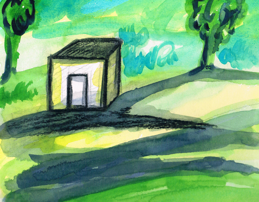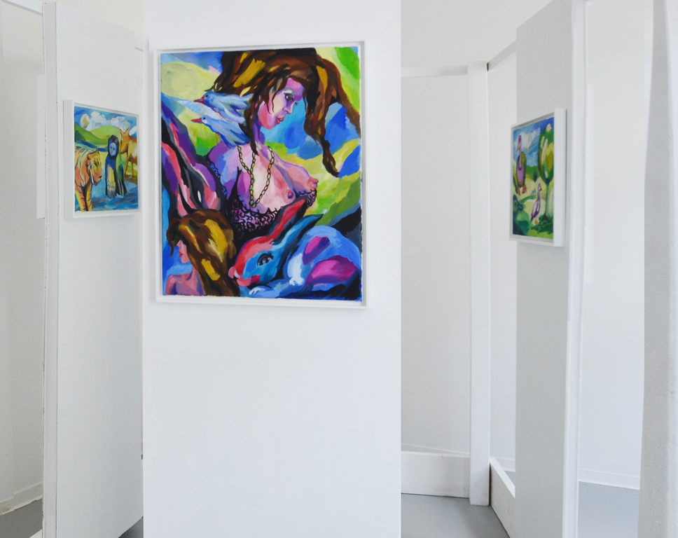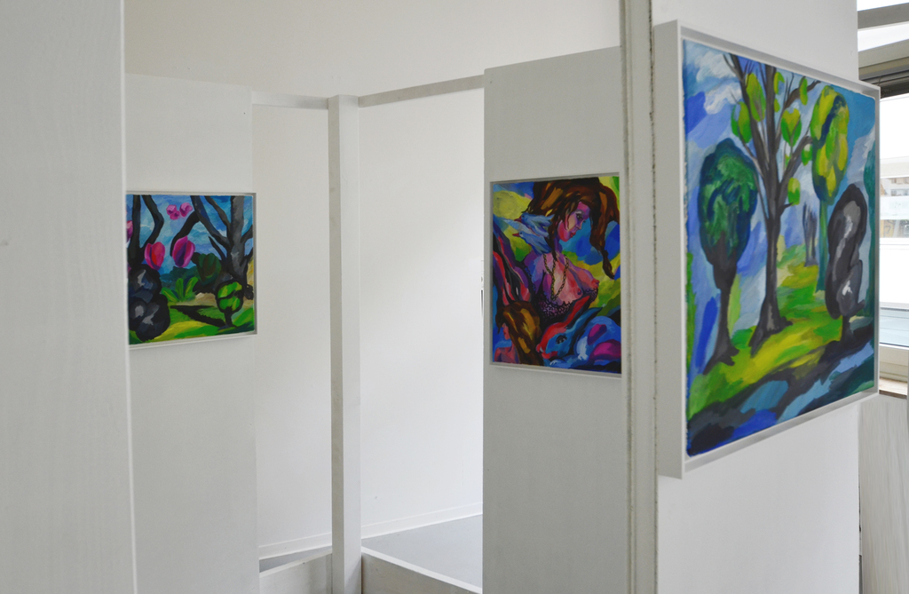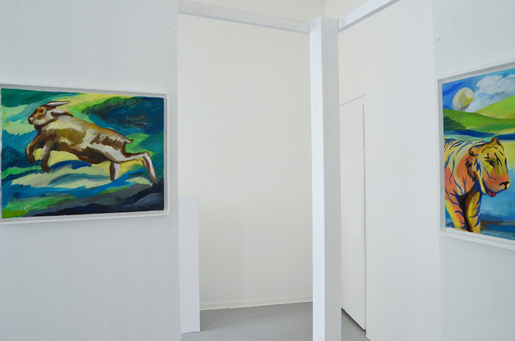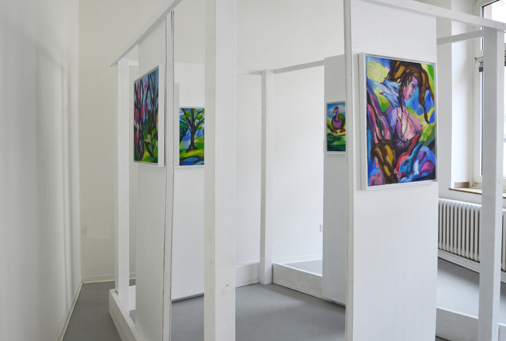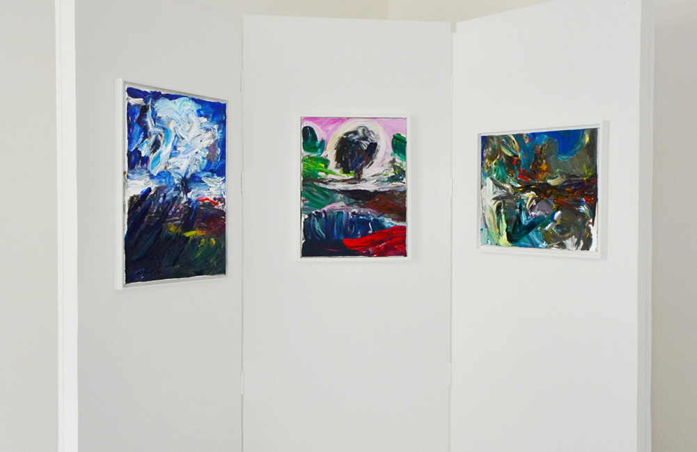 Die Atmosphäre der Umgebung wird komponiert und gleichzeitig verändert. Das Energiegebilde der Landschaft erweitert sich durch die Kompositionen der Bilder. Bäume, Pflanzen und Tiere wiederholen sich in den Bildmotiven und den Farben und werden so hervorgehoben, konzentriert und abstrahiert. Die Bedeutungsebenen der, mit Farben, erzeugten Motive in den Bildern werden wahrnehmbar angereichert und so in die Bildlogik des Kunstkontextes übersetzt..Die aufgebauten Räume, die Erinnerungen an tempelähnliche Formen wachrufen, grenzen sich einerseits gegenüber dem Umraum ab und bilden in sich einen eigenen, geistigen, eher zeitlosen Kosmos. Andererseits öffnen sie sich ihrer Umgebung, nehmen deren Atmosphären auf und komponieren diese neu. So entsteht eine Art Raum im Raum Situation. Die Räume treffen aufeinander, grenzen sich gegenseitig voneinander ab, verbinden sich miteinander und entstehen auseinander.