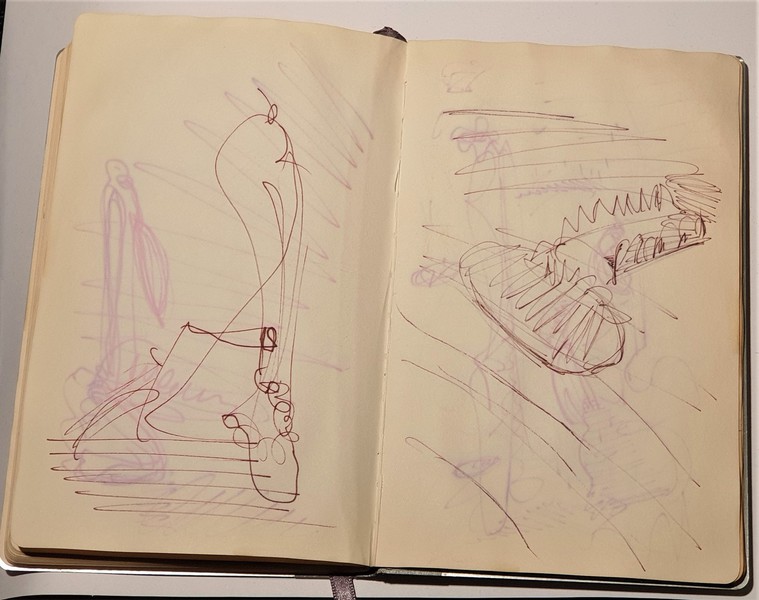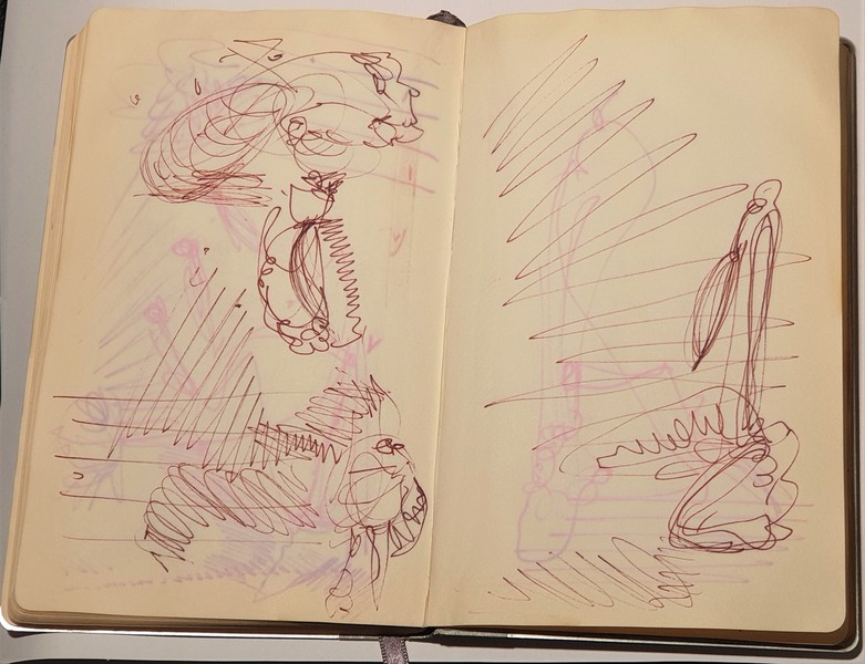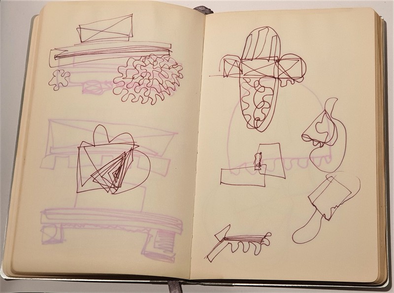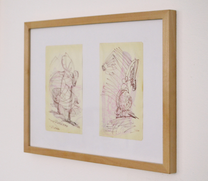 Marketten aus Gips und Ton mit Harz und Zeichnungen, Skizzen