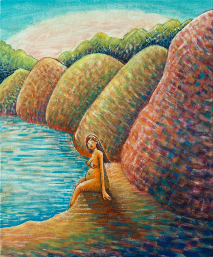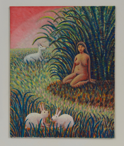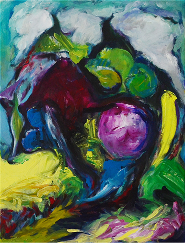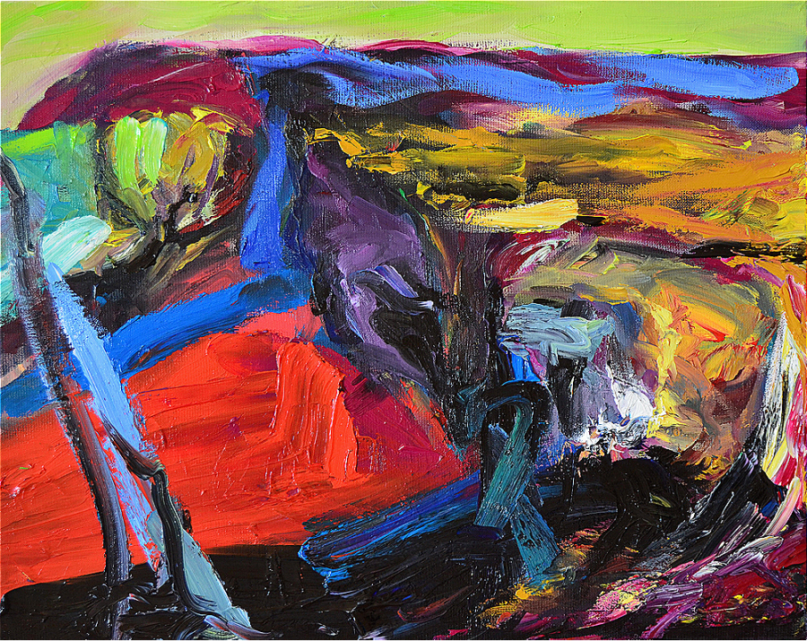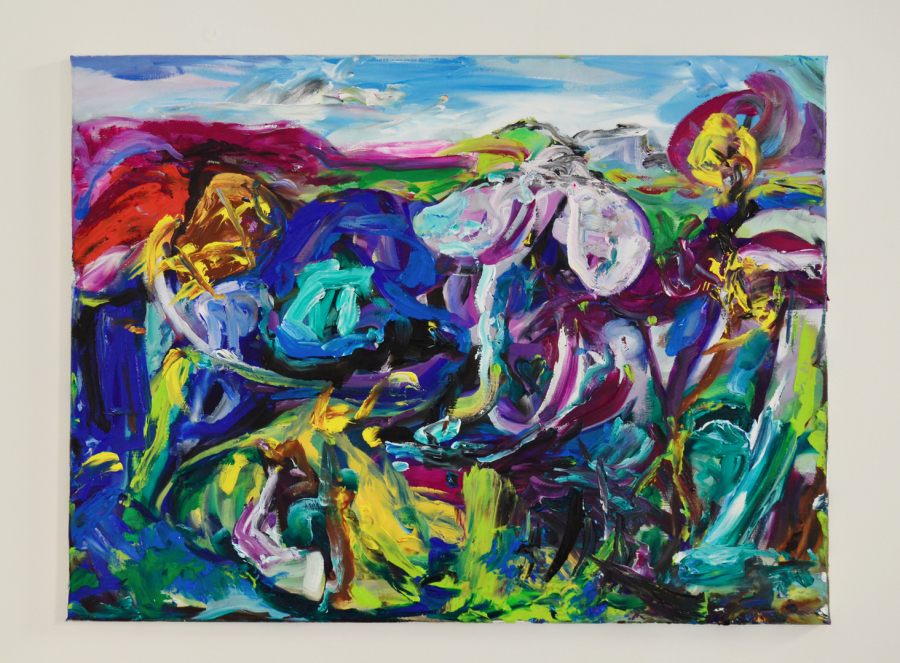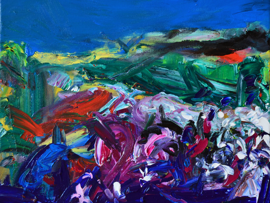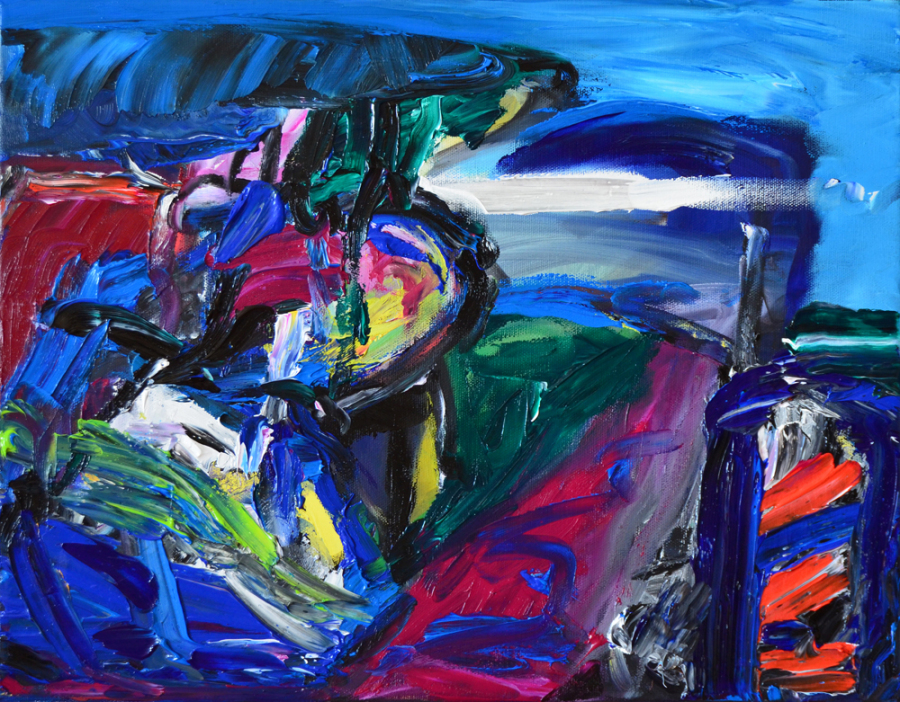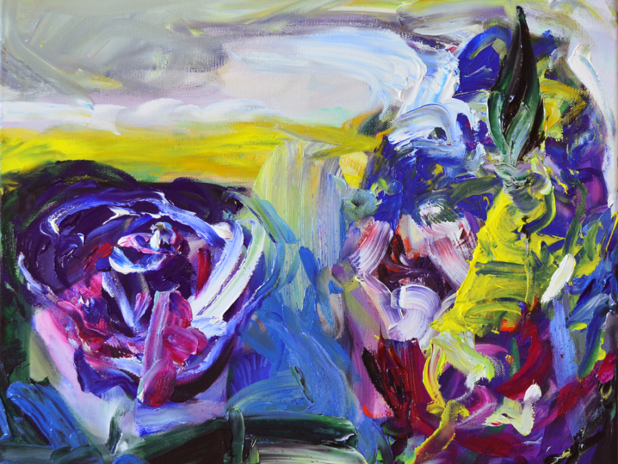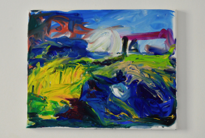 Wiese 1, Öl auf Mischgewebe, 2020, André d´Orcay Blauer Kopf, Öl auf Mischgewebe, 2020, André d´Orcay